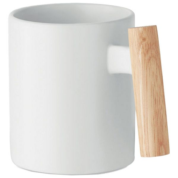 Šalica keramička 320ml Crenate sa drvenom drškom bijela